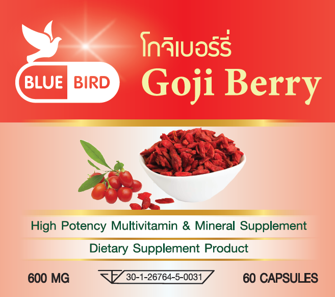 โกจิเบอร์รี่ Goji Berry ตรา บลูเบิร์ด ขนาด 600 มิลลิกรัม 60 แคปซูล