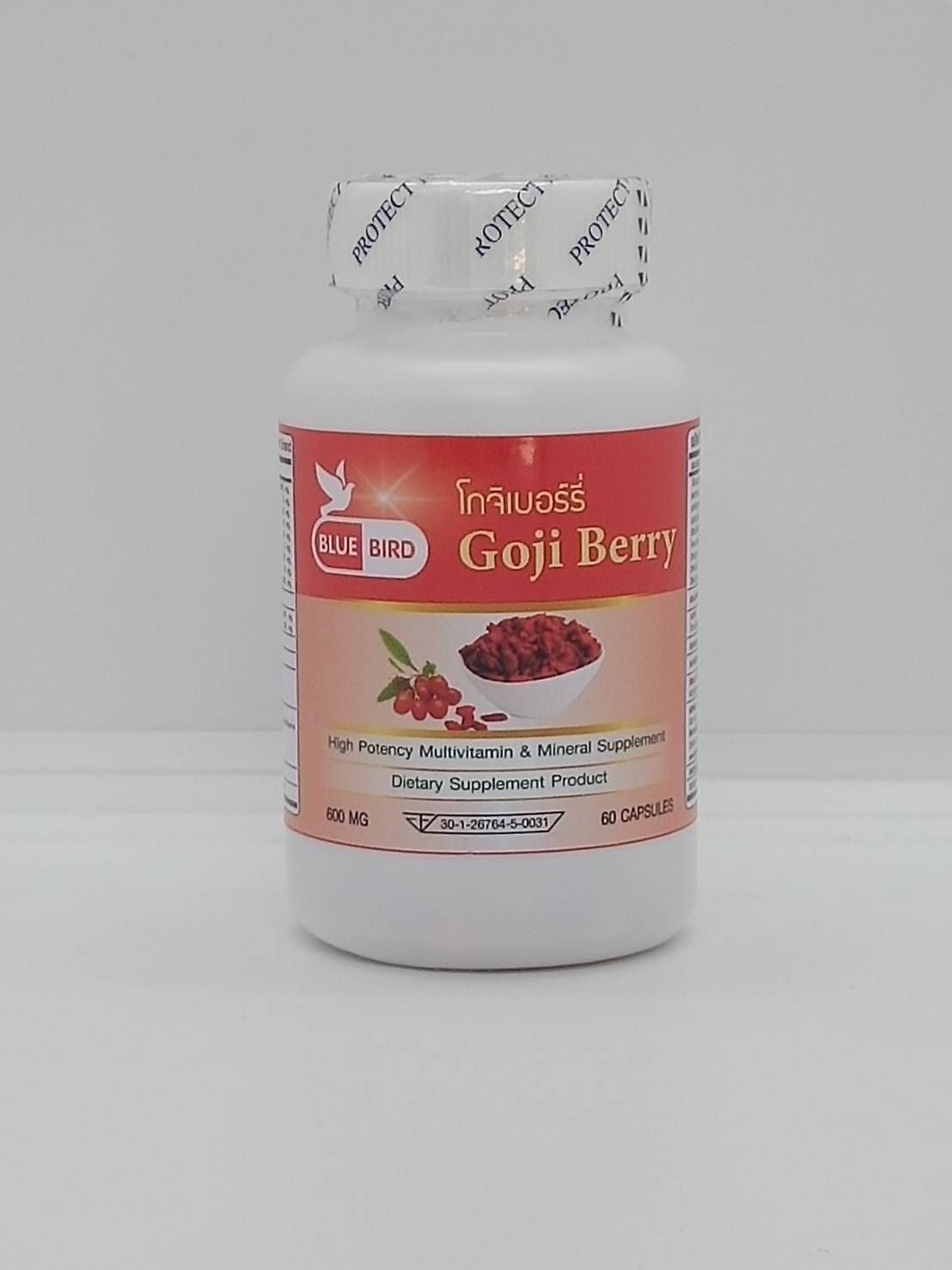 โกจิเบอร์รี่ Goji Berry ตรา บลูเบิร์ด ขนาด 600 มิลลิกรัม 60 แคปซูล 1 กระปุก