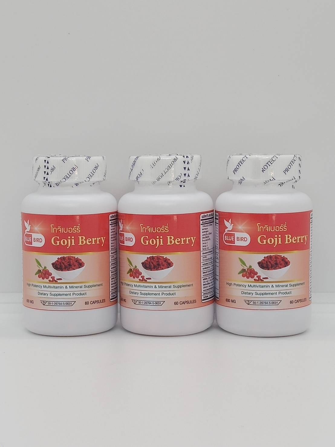 โกจิเบอร์รี่ Goji Berry ตรา บลูเบิร์ด ขนาด 600 มิลลิกรัม 60 แคปซูล ซื้อโปร 2 แถม 1